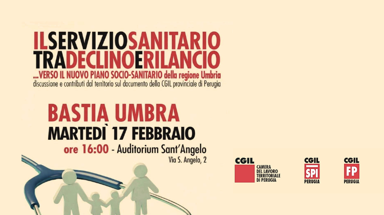 Una serie di appuntamenti utili a promuovere un reale ascolto delle esigenze dei cittadini e del territorio e affrontare insieme i nodi presentati dalla stessa Cgil di Perugia nel documento "Il servizio sanitario tra declino e rilancio" elaborato insieme a operatori e tecnici del sistema sanitario regionale e con la collaborazione dello Spi Cgil di Perugia, della Funzione Pubblica Cgil di Perugia e dell'Associazione Nuove Ri-Generazioni Umbria.